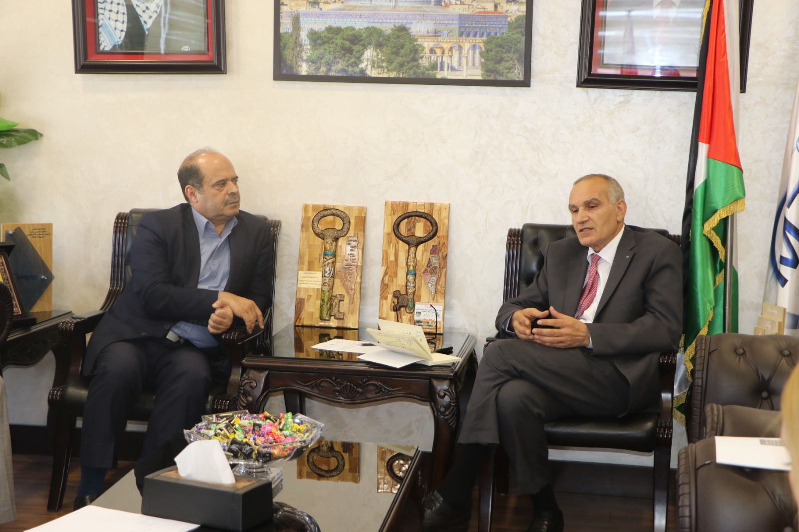 وزير الاتصالات وتكنولوجيا المعلومات د.م إسحق سدر يعقد اجتماعا مع مسؤول وحدة الشؤون الفلسطينية لدى وزارة الخارجية الأمريكية في فلسطين.